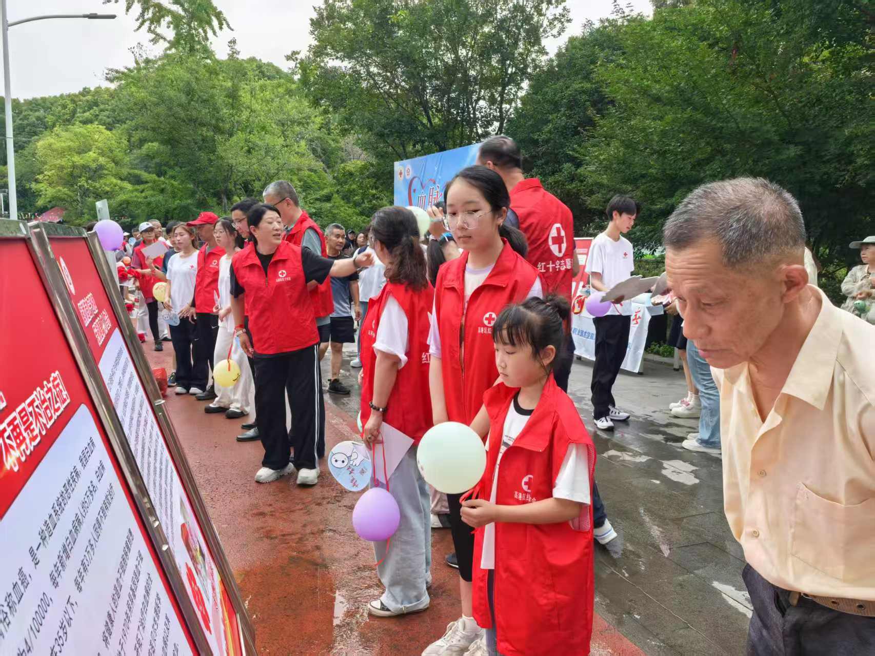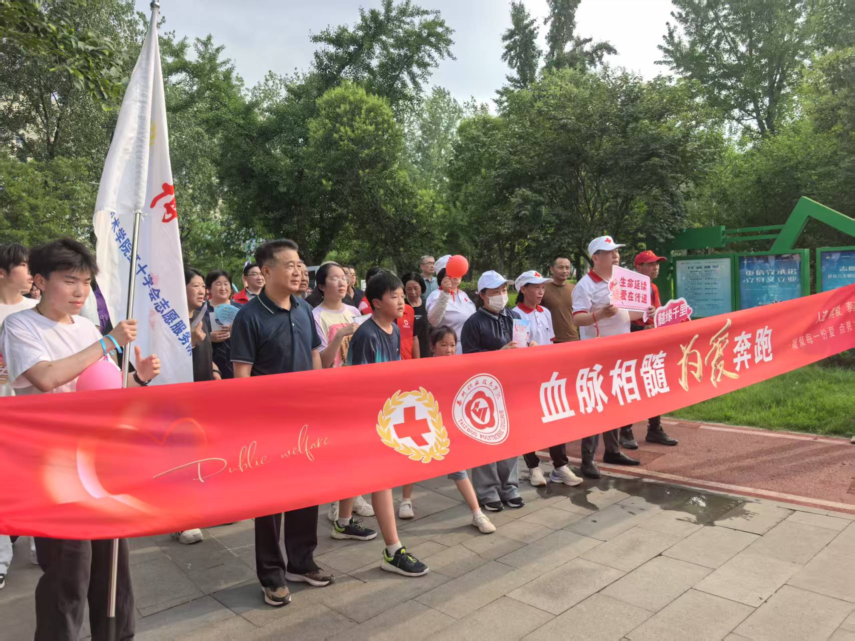 6月26日,高港区红十字会联合泰州职业技术学院组织红十字志愿者顶着高温,走进高港生态公园,用“为爱奔跑”的方式,向市民宣传推广献血、献血小板、献造血干细胞“三献”知识。
