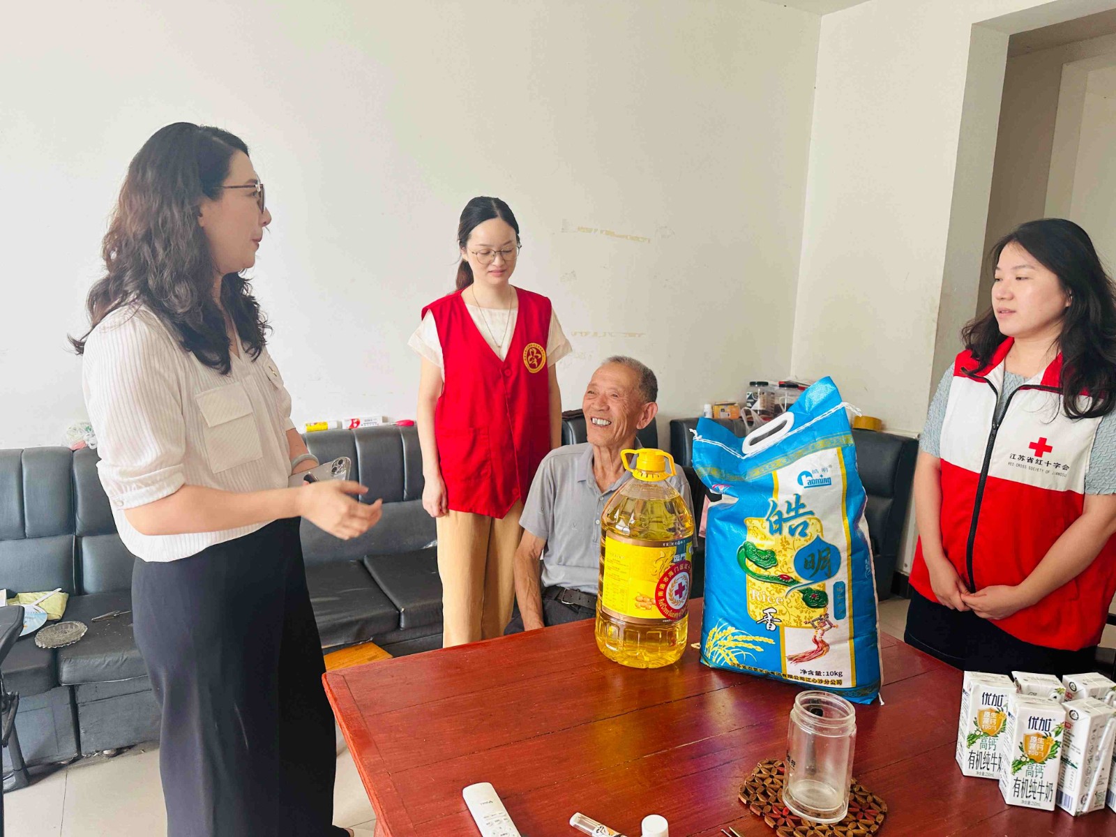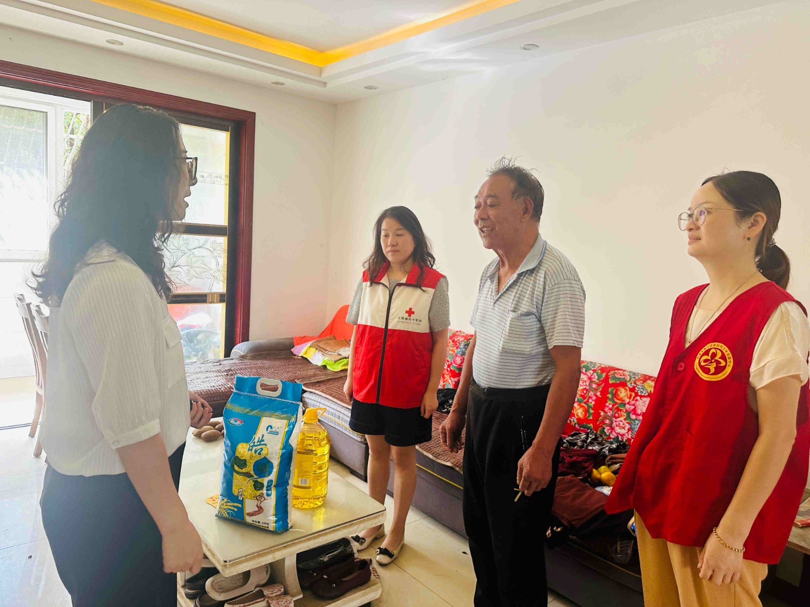 活动前期,社区博爱家园工作人员提前摸排,精准梳理处需要帮扶的家庭名单,并准备了米、油等慰问物资,确保每一份关怀都送到心坎上。慰问过程中,志愿者们分组入户,与受助者促膝交谈,详细询问他们的身体状况和生活需求,耐心倾听诉求,同时向大家普及应急避险、健康养生等知识,将红十字的温暖与实用服务结合。“谢谢你们常常记挂着我”独居老人仇师傅接过慰问品时,眼眶泛起暖意。志愿者还帮老人检查了家中燃气、电路安全,叮嘱他们注意秋季保暖,有困难可随时联系社区。